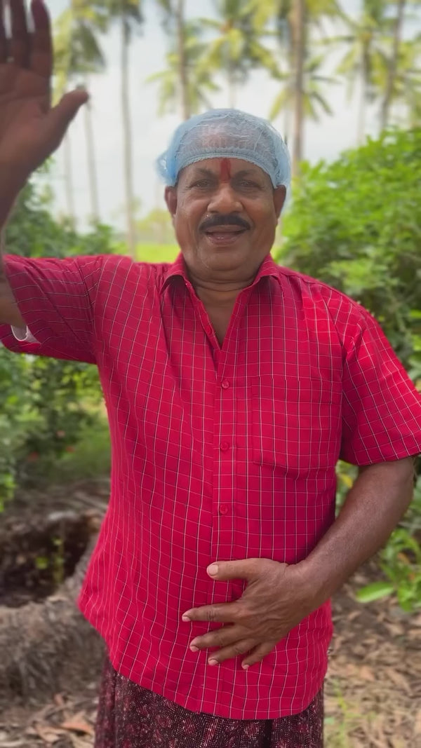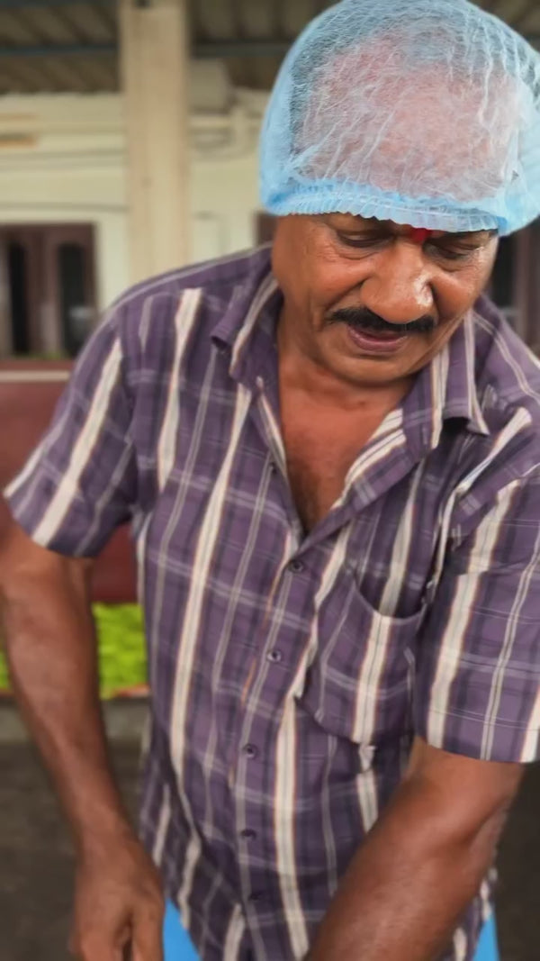 With 40+ years of culinary experience, Chef Venkatesh from Kolluru, Andhra Pradesh brings the authentic flavours of Andhra & Telangana cuisine to your home. From outdoor cooking in nature to handcrafting every jar of pickle — the tradition lives on.